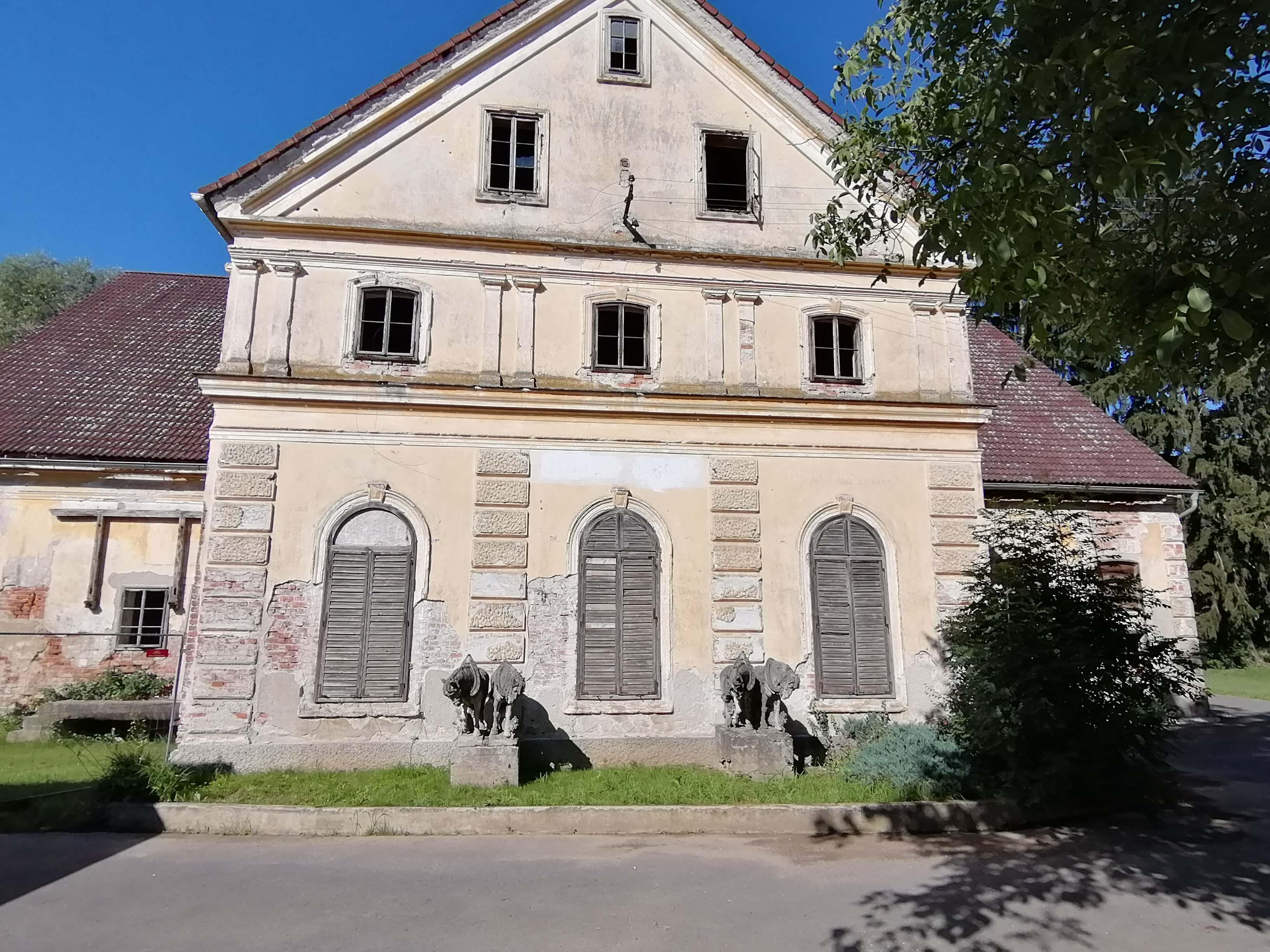Die Anfahrt NACH Lannach zu meinem zweiten Ort des Tages zog sich dann etwas hin. KZ Aussenlager Schloss Lannach ist heute in Privat Besitz. Direkt im. Ort gelegen auf der Anhöhe sieht man es schon bevor man in den Ort kommt. Die Erkenntnis vor dem Tor ist ernüchternd. Keine Hinweis darüber was hier passiert ist bzw war.