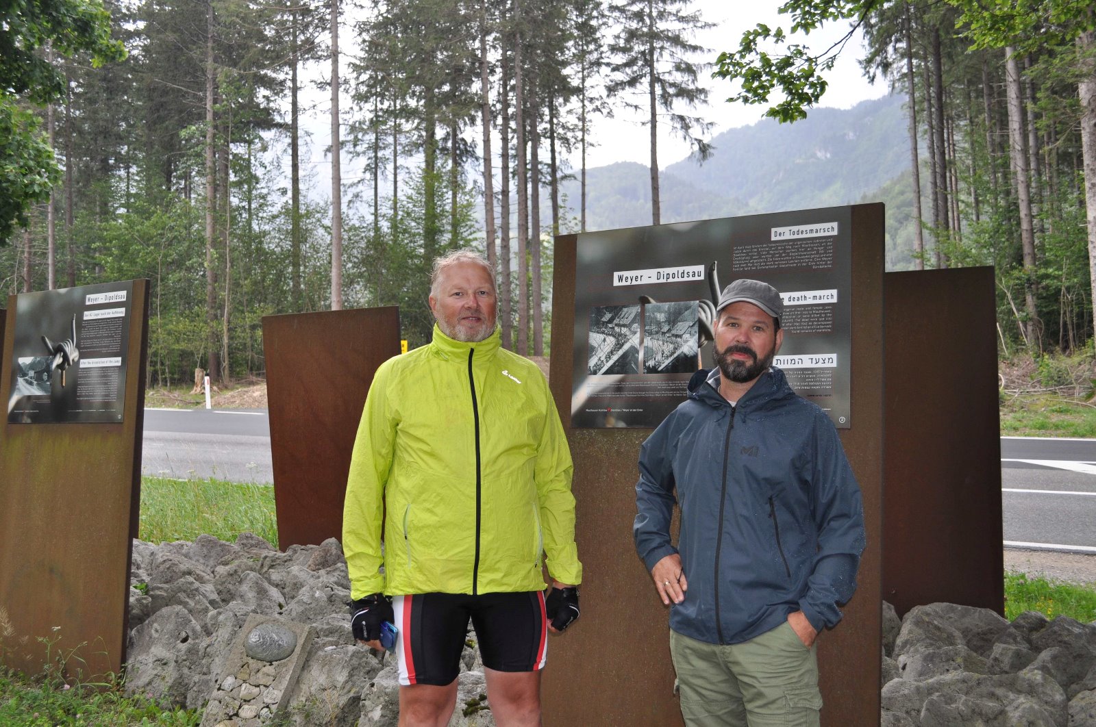 Gesamt darf man sagen das in Steyr eine starke Erinnerungskultur vorhanden ist. Da ich erst am frühen Nachmittag einen Termin mit der Gruppe in Ternberg hatte ließ ich mich von dem Treiben der Stadt gefangen nehmen. Kaffeepause, und dann noch zu einem Gespräch über Gravelbike zu Wolfgang Spatt. Der Mann lebt Handwerk Fahrradtechnik und das hört und sieht man im Gespräch im Tun. Nachdem wir uns auf den Spätsommer verständigt haben das Thema Gravelbike für mich anzugehen setzte ich meinen Weg im Ennstak weiter fort. Nächste Station Ternberg. Die Besonderheit dort ist das direkt neben der Straße von KZ Aussenlager Ternberg noch die ehemalige Küchenbaracke steht. Im Kellerbereich hat die Katholische Jugend einen Gedenkraum eingerichtet. Ebenfalls dort wird auch den Todesmärschen gedacht die durch das Ennstal Richtung Mauthausen geführt haben. Die nächsten paar Kilometer wurde ich dann von 5 begeisterten Mädels und ihrer Betreuerin begleitet. In dem ewigen auf und ab machten die Mädels richtig Tempo und haben mich gut geordert. Während sich die Gruppe dann in Losenstein mit einem Eis belohnt ging es für mich weiter bis Dipoldsau. Danke für die kurzweilige und lustige Begleitung. Eine super Idee. Das ehemalige KZ Aussenlager Dipoldsau befand sich zwischen Weyer und Großraming. Eine Gedenkstätte direkt nebst n Bundesstraße erinnert dort an die Zeit und Geschehnisse nicht nur des Lagers sondern auch über die Todesmärsche. Weyer selbst zeigt sich ebenfalls mit einer offenen Erinnerungskultur. So darf und soll es sein. Durch den späten Termin in Ternberg ging mir langsam die Zeit aus. Die Strecke nach Amstetten waren von dort noch etwas mehr als 40km. Der einsetzenden Regen machte das ganze nicht besser. Die Initiative Ternberg rettete mich dann. Mit einem Shuttel würde ich durch den Regen bis Amstetten gebracht. Schön wenn Hilfe so unkompliziert passiert. Danke nochmals an dieser Stelle.