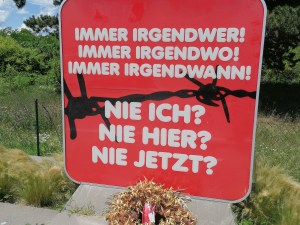 Ein Gedenken kann dort stattfinden wo man erinnert, wo eine Tafel, einen Gedenkstein, eine Skulptur ein Denkmal an die Geschichte erinnert und mahnt. Nach dem Krieg sind unzählige Gedenksteine in beinahe jedem Ort gewachsen. Zur Erinnerung unserer Opfer des 1. und 2. Weltkrieges. In manchen Orten wird schlicht darüber hinweggesehen das es jemals ein Außenlager gegeben hat. Es wird totgeschwiegen, irgendwann muss ja auch einmal Schluß mit dem ganzen sein. Oder wie im Fall am Flughafen Schwechat wo der Gedenksteine dann so angebracht das er öffentlich nicht zugänglich ist.