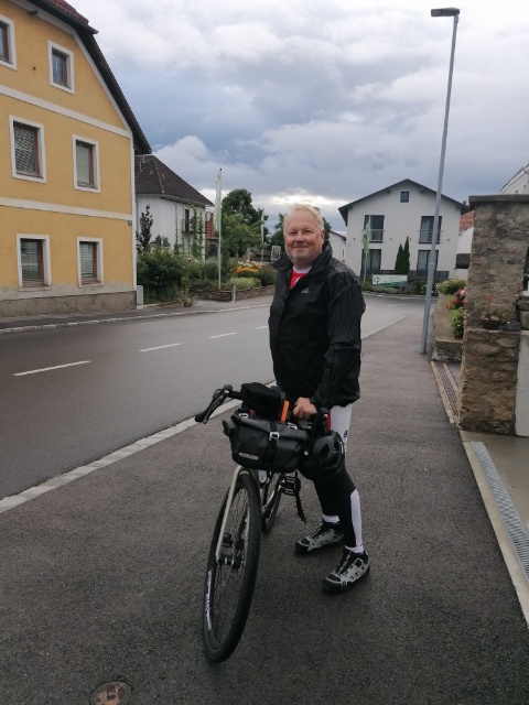 Was mir aber mehr Sorgen bereitet war der angesagte Regen. So ging es über Gars nach Eggenburg und weiter nach Laa an der Thaya. Dort hat mich der erste Regenschauer erwischt. Ich konnte mich bei einem Wirtschaftshof unterstellen. Und mein Freund Flip der Grashüpfer hat das Taxi ins trockene auch angenommen. In Laa dann eine längere Pause. Natürlich Kaffee und dann lachte wieder die Sonne. Von Laa weg ging es immer wieder bergan bis kurz vor der Grenze zur Republik Tschechien dort zwang mich der zweite Regenschauer zu einer Pause. Nachdem ich dann kurz später nochmal für gut 20 Minuten pausieren musste wegen dem Regen, lief es dann bis Bresclav ohne weitere Verzögerung. Die Sonne kam raus und ließ mich die letzten knapp 10 Kilometer ohne Ärmlinge absolvieren. Ein lässiger erster Tag mit einer tollen Streckenführung und auch coolen Waldpassagen.
