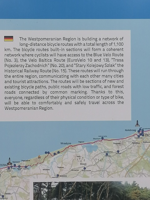 16.Tag: Łeba nach Podczele 184km/ Nach einer unruhigen Nacht. Fenster war durch die Party gegenüber und die Gelsen nicht zu öffnen, verändert ich noch in den Morgenstunden meinen Routenverlauf. Ich habe mich entschieden die Route durch das Sumpfgebiet nicht zu nehmen und dafür in einem Bogen von Łeba weg bis nach Ustka zu nehmen. Dort folgte ich dann der Euroveloroute 10 und 13.
