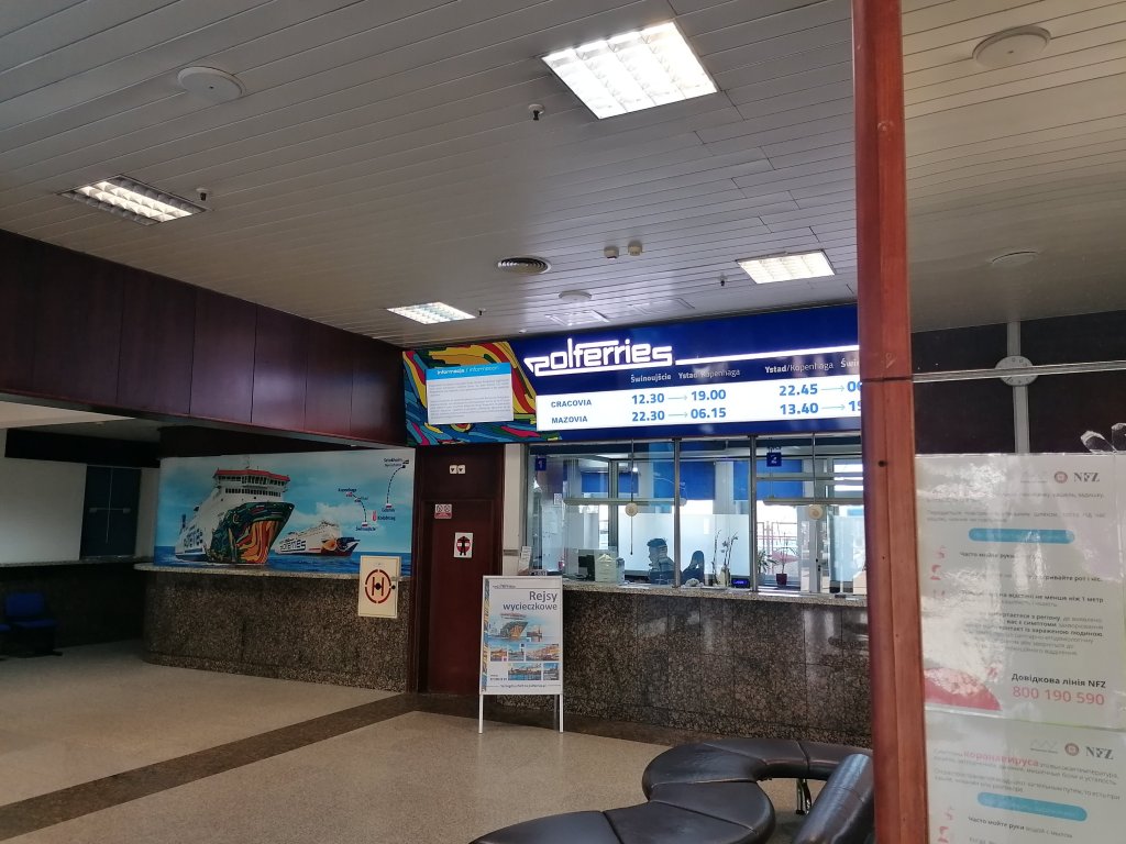 Nächste Aufgabe Check in für die Fahrt nach Schweden. Alles allem dann in einer Minute erledigt. Und jetzt? Jetzt hieß es warten, warten auf den Einlass in die Verladezone. Dann wieder warten bis man auf die Fähre darf. Und dann warten und sitzen und schlafen und rumgehen.