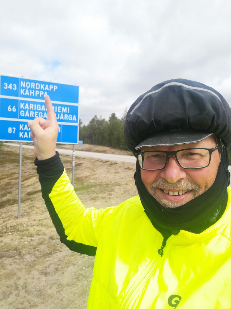 Der 33.Tag zeigte sich von einer sehr guten Seite. Zwar kalt aber mit Sonne und der Wind war bei den Höhemetern auchh kein entscheidender Faktor. Kam nur langsam wieder in den Rhythmus. Kurz noch Mario getroffen den ich am Abend am Campingplatz wieder traf. Dann der erste Wegweiser auf dem das Nordkap angeschrieben stand. Das macht schon etwas mit einem. Jetzt ist dieser Punkt zum Greifen nahe und dennoch kann soviel noch passieren, vor allem das Wetter ist das große Fragezeichen. Nun einfach von Tag zu Tag schauen. Der Weg heute war ein 98km ewiges berghoch. Immer wieder Wellen teilweise mit 8% Steigung. Die Abfahrt zum Campingplatz sprich die letzten 2km haben echt entschädigt.. Landschaft ist Atemberaubend schön.