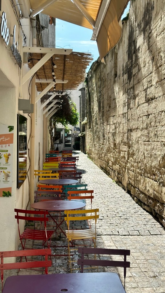 Mein nächster Halt war Aigues-Mortes, der Hauptort des Arrondissements Nîmes. Dieser Ort ist wirklich ein Juwel. Besonders beeindruckend ist der Wehrgang mit seinen drei Ecktürmen und Toren, wie dem Porte des Moulins. Von hier aus hat man einen atemberaubenden Blick auf die Altstadt, die Camargue und die beeindruckenden Salzberge der Salins du Midi. Ich nutzte die Gelegenheit für eine Kaffeepause und genoss die Aussicht.