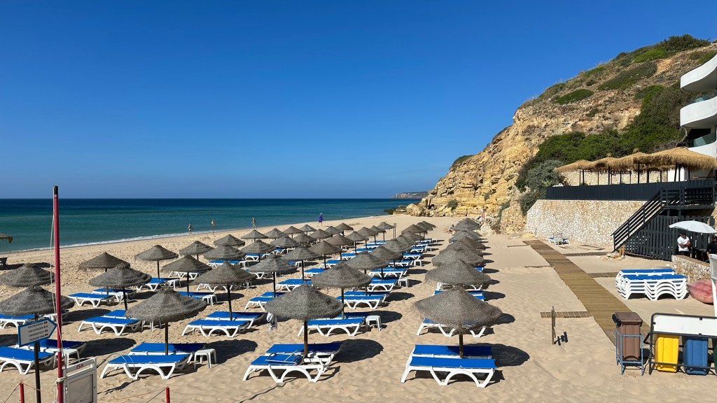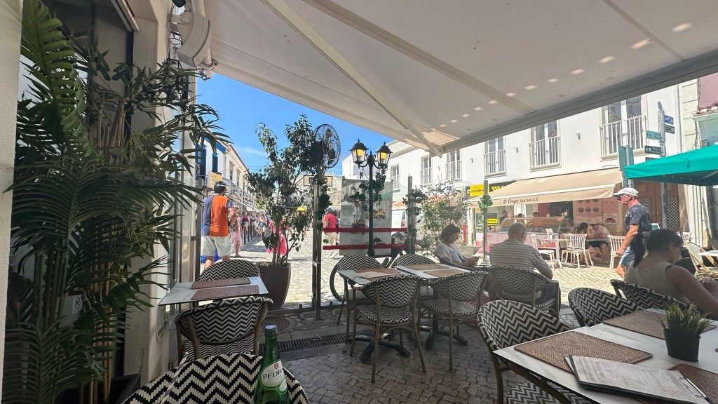 Nach 35 Kilometern in Lagos kam dann der Einbruch. Ich musste etwas ändern, um mein Etappenziel in Albufeira zu erreichen. Also nutzte ich für eine kurze Strecke die Bahn und radelte dann die letzten 30 Kilometer wieder an mein Ziel. Dort angekommen, gab es in einem Restaurant dann endlich etwas Ordentliches zu essen: einen veganen Salat und einen Burger. Während ich dem Treiben zuschaute, stellte ich fest – es wird heute laut.