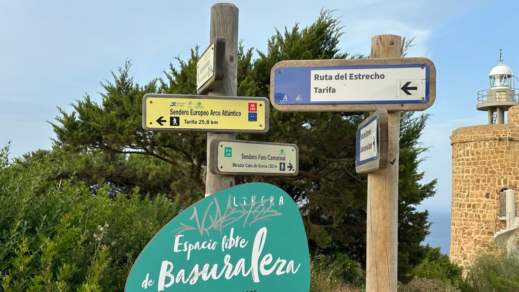 Gegen halb neun brach ich auf, bei bereits 28 Grad. Die Bewölkung am Morgen war ein Segen und machte das Radeln angenehmer. Doch nach nur 6 Kilometern begann die eigentliche Herausforderung des Tages: die Höhenmeter. Ich musste über einen Bergrücken, um auf der anderen Seite weiter nach Tarifa zu kommen, dem südlichsten Punkt auf dem europäischen Festland. Bis dahin gab es ein paar Abfahrten und kleine, feine Steigungen, die mich bestätigte das ich kein Bergspezialist bin und werde.