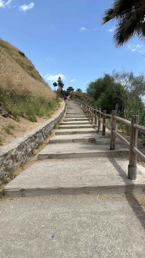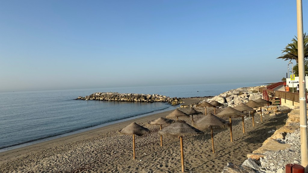 Nach einem kurzen Zwischenstopp in Marbella für ein Frühstück, das ich dringend brauchte, um meine Energiereserven wieder aufzufüllen, begann mein kleines Abenteuer. Immer wenn ich dachte, ich könnte die stark befahrene Straße umgehen, indem ich am Strand entlangfuhr, landete ich in einem Labyrinth aus Villen und Bungalows. Und als ob das nicht genug wäre, musste ich mein Rad am Strand entlangschleppen, nur um vor einer Klippe zu stehen und bis hierher und nicht weiter. So hieß es zurück zum Abzweiger. Die Krönung war, als ich mein Rad die Stiegen der Klippe hochtragen musste. Naja, der Tag lief nicht gerade nach Plan.